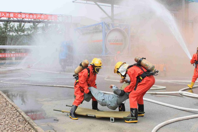 6月21日上午,9時(shí)40分,江山股份氯氣站一輛裝有20噸液氯的槽罐車在接卸液氯作業(yè)時(shí),管道“發(fā)生”氯氣泄漏,氯氣向周邊擴(kuò)散,影響了附近企業(yè)和居民的人身安全……這是南通市氯氣泄漏事故應(yīng)急綜合演練中的一幕。 由市政府主辦、江山股份承辦的南通市氯氣泄漏事故應(yīng)急綜合演練是2012年南通市安全生產(chǎn)月的“重頭戲”, 此次應(yīng)急演練重在提高政府、職能部門、企業(yè)應(yīng)對危險(xiǎn)化學(xué)品事故的應(yīng)急處置能力,最大限度減少因安全生產(chǎn)事故給企業(yè)和人民群眾造成的財(cái)產(chǎn)損失和人員傷亡。 由于氯氣是具有刺激性氣味的有毒氣體,可以溶解于水,因此應(yīng)急處理主要是通過噴灑形成水霧的方法來降低氯氣濃度,控制擴(kuò)散范圍?,F(xiàn)場用紅色煙霧代替黃綠色氯氣。演練中,市安監(jiān)、公安、消防、環(huán)保、質(zhì)監(jiān)、衛(wèi)生、氣象等部門積極聯(lián)動(dòng),各司其職,氣象部門提供風(fēng)力、溫度、濕度等實(shí)時(shí)數(shù)據(jù),環(huán)保部門負(fù)責(zé)空氣中氯氣含量檢測,公安負(fù)責(zé)交通管制和疏散救援……僅用了不到40分鐘即圓滿完成了泄漏源堵漏和周邊企業(yè)及居民的疏散工作,充分展示并檢驗(yàn)了市政府、職能部門及企業(yè)應(yīng)對危險(xiǎn)化學(xué)品事故的應(yīng)急處置能力。 副市長徐輝擔(dān)任現(xiàn)場總指揮,并對演練做了綜合點(diǎn)評。江山股份董事長李大軍觀摩現(xiàn)場演練,總經(jīng)理薛健任現(xiàn)場副指揮。