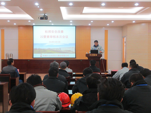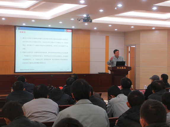 12月12日下午,杜邦安全改善項(xiàng)目年度審核末次會(huì)議在江山股份西區(qū)6號(hào)會(huì)議室召開。該公司總經(jīng)理薛健發(fā)表重要講話。