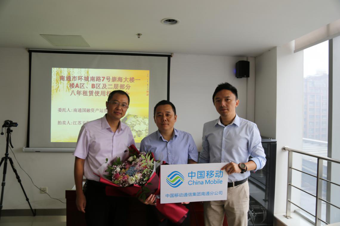 在宣讀了房屋租賃使用權拍賣的特別規(guī)定等文件并確認各競租人無異議后,現(xiàn)場監(jiān)拍人遞交了本場拍賣會的底價函。經(jīng)拍租,中國移動通信集團江蘇有限公司南通分公司代理人、張家港保稅區(qū)佑福珠寶貿易有限公司代理人分別拍中崇海大樓A區(qū)八年租賃使用權、B區(qū)八年租賃使用權,并簽署了成交確認書,成交年租金合計達620萬元,八年租金總額達4960萬元。公司領導代表公司向房屋競租人遞送了鮮花表達祝賀并合影留念。統(tǒng)一規(guī)劃,統(tǒng)一布局,統(tǒng)一招租,統(tǒng)一競租,國融公司充分挖掘崇海大樓優(yōu)越的商業(yè)地段和濃厚的商業(yè)氛圍優(yōu)勢,轉化為優(yōu)良、持久、高效的經(jīng)營收益,實現(xiàn)了該處資產科學升值。公司將以崇海大樓成功招租的經(jīng)驗為借鑒,繼續(xù)做好所管理國有資產的升級改造,切實履行好國有資產保值增值的職責,推動企業(yè)的高質量發(fā)展。