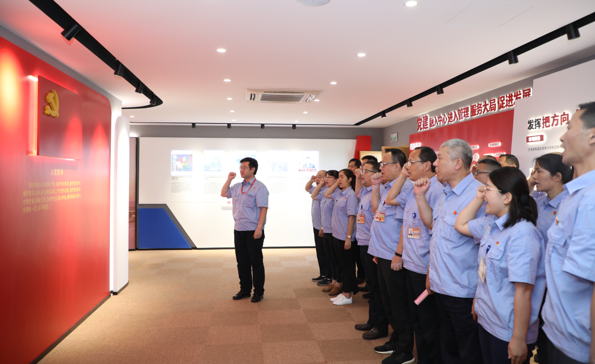 在公司黨委委員、副總經(jīng)理毛繼潤帶領(lǐng)下,參加活動的全體黨員面向黨旗,莊嚴(yán)宣誓,重溫入黨誓詞。公司黨委為現(xiàn)場7月入黨的12名同志過政治生日,贈送政治生日賀卡和圖書。公司黨群紀(jì)檢部副部長金周玉帶領(lǐng)參觀活動中心。黨員們在廉潔合規(guī)承諾墻上簽名。