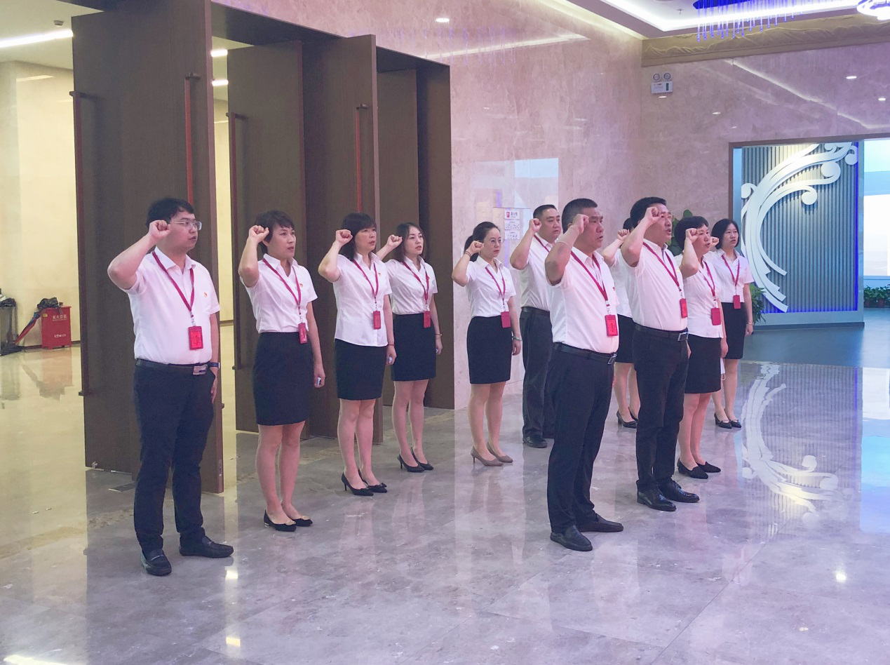參觀結(jié)束后,在電子黨旗背景前,公司黨總支書記沈利帶領(lǐng)全體黨員重溫入黨誓詞,時刻謹(jǐn)記黨員身份、牢記入黨初心。