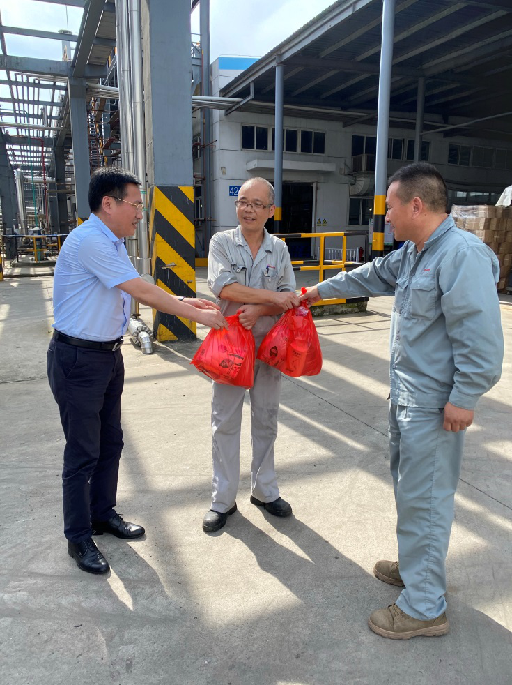 近日,連日高溫,驕陽似火。8月 6日下午,南通國泰創(chuàng)業(yè)投資有限公司黨總支書記、總經理沈利帶領綜合管理部、資產管理部的相關同志到江山農化、興盛木業(yè)等公司,看望、慰問酷暑中仍堅守奮戰(zhàn)在生產一線的公司職工,讓他們在炎炎夏日里感受到組織的關懷與溫暖。