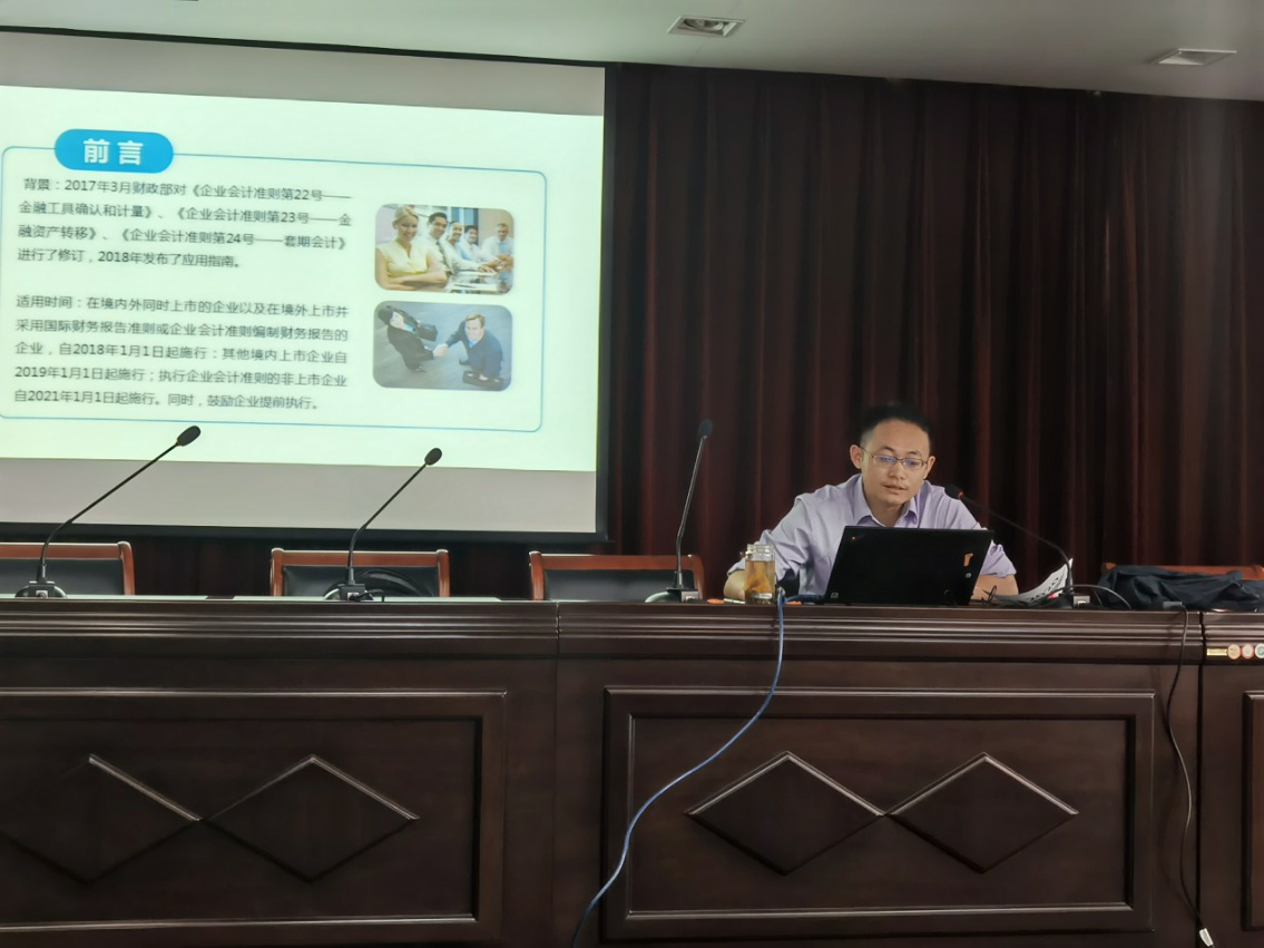 2018年財政部對企業(yè)會計準則第22號、第23號、第24號發(fā)布了修訂的應用指南,要求執(zhí)行企業(yè)會計準則的非上市企業(yè)自2021年1月1日起施行,掌握并熟練運用新金融工具準則成為迫在眉睫的任務。為盡快掌握與熟練應用新金融工具準則,10月20日下午,產(chǎn)控集團邀請了南通萬隆會計師事務所汪華平主任為產(chǎn)控集團財務人員開展了關于“金融工具準則”的培訓,集團本部及各子公司財務分管領導及財務部門負責同志參加了本次培訓。
