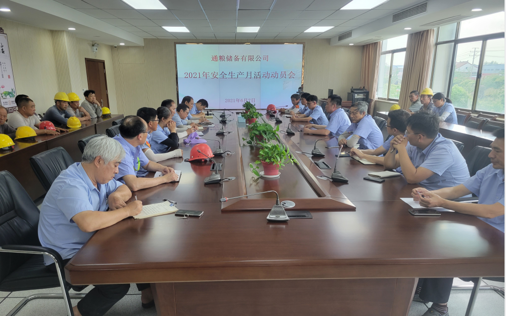 為全面貫徹習(xí)近平總書記關(guān)于安全生產(chǎn)的重要論述和黨中央、國務(wù)院關(guān)于安全生產(chǎn)重大決策部署,按照《關(guān)于產(chǎn)控集團(tuán)組織開展2021年“安全生產(chǎn)月”活動的通知》文件要求,6月7日下午,南通通糧糧食儲備有限公司緊扣“落實安全責(zé)任,推動安全發(fā)展”這一主題,召開“安全生產(chǎn)月”活動動員會,旨在進(jìn)一步樹牢安全發(fā)展理念,強化全員安全責(zé)任,推動公司安全生產(chǎn)工作上一個新臺階。全體在崗職工和外包工人參加此次動員會。
