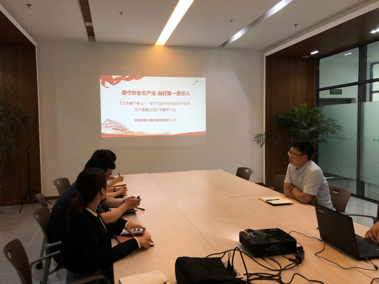 為進(jìn)一步加大全公司安全生產(chǎn)宣教力度,推動落實企業(yè)安全主體責(zé)任,全面提高員工安全素質(zhì),6月13日下午,國盛環(huán)境在會議室開展“遵守安全生產(chǎn)法 當(dāng)好第一責(zé)任人”主題活動,組織全體員工集中學(xué)習(xí)《生命重于泰山——學(xué)習(xí)習(xí)近平總書記關(guān)于安全生產(chǎn)重要論述》電視專題片。