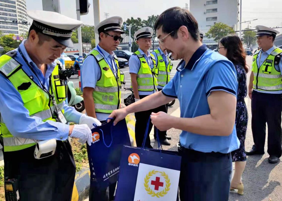 8月12日上午,精華制藥集團和南通市紅十字會相關(guān)負責同志來到南通市公安局交警支隊四大隊及四大隊所轄兩個路段,慰問高溫下堅守崗位的一線交警。精華制藥集團監(jiān)事會主席薛紅衛(wèi)和南通市紅十字會黨組成員朱建新將季德勝健膚皂、潔面乳及防疫藥茶等防暑防疫物資送到路面執(zhí)勤的交警手中,向他們表達了由衷的敬意。