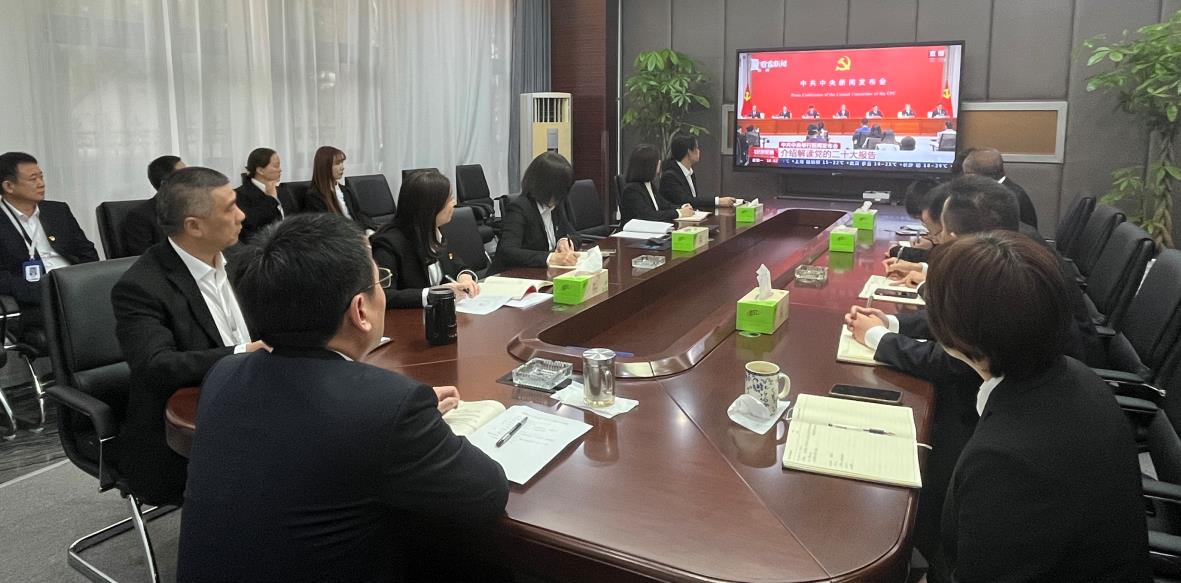 會議集中觀看了中共中央介紹解讀黨的二十大報告新聞發(fā)布會,結(jié)合發(fā)布會所介紹的“新時代十年的偉大變革、推動高質(zhì)量發(fā)展、推進法治中國建設(shè)、健全全面從嚴(yán)治黨體系”等內(nèi)容,國泰公司黨總支委員、副總經(jīng)理夏穎為全體黨員、管理人員講授了一堂以“學(xué)習(xí)領(lǐng)會新理論,奮力譜寫新篇章”為主題的黨課,帶領(lǐng)大家進一步領(lǐng)會黨的二十大報告內(nèi)容。 通過觀看解讀“輔導(dǎo)”和聆聽黨課的方式,大家對黨的二十大精神有了進一步的理解。黨的二十大報告主題鮮明、思想深邃、高屋建瓴、氣勢磅礴,為黨和國家事業(yè)的新發(fā)展描繪了美好前景,指明了前進方向。大家表示,將立足工作實際,認(rèn)真學(xué)習(xí)貫徹落實黨的二十大精神,踔厲奮發(fā)、勇毅前行,努力開創(chuàng)國泰公司高質(zhì)量轉(zhuǎn)型發(fā)展新局面。