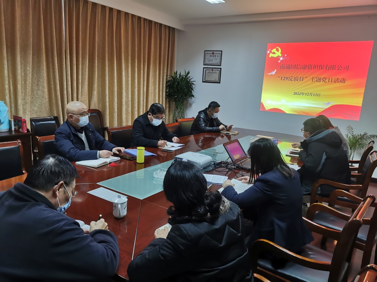 12月13日下午,國信擔(dān)保公司黨支部組織開展了“12?9”國際反腐日主題黨日活動(dòng),公司全體干部職工參加了此次活動(dòng)。