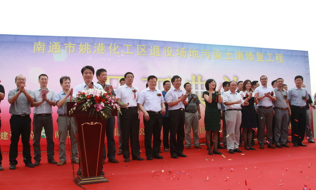 2013年8月30日上午9點(diǎn)18分,政府重視、民眾關(guān)心的南通市姚港化工區(qū)退役場地污染土壤修復(fù)工程開工儀式在姚港路35號舉行。本次工程修復(fù)范圍包括原南通農(nóng)藥廠、樹脂廠、染化廠生產(chǎn)廠區(qū)及姚港河部分河段,修復(fù)土地面積約550畝,修復(fù)土方量28萬立方米。根據(jù)前期修復(fù)調(diào)查評估,修復(fù)地塊的污染物主要以揮發(fā)、半揮發(fā)農(nóng)藥、有機(jī)污染物為主,修復(fù)工作將使用熱解析、化學(xué)氧化等多種成熟技術(shù)。修復(fù)工期一年半,修復(fù)達(dá)標(biāo)后再進(jìn)行二次開發(fā)。 本次修復(fù)工程是南通歷史上最大規(guī)模的土壤修復(fù)項(xiàng)目,從前期的土壤調(diào)查評估、確定修復(fù)目標(biāo)值,到實(shí)施招投標(biāo)、確定施工單位,前后共歷時(shí)三年多。市委市政府對土壤修復(fù)工作高度重視,在綜合部門的幫助支持下,工作組創(chuàng)造性地摸索出符合南通土壤修復(fù)工作要求的做法,如研究確定了項(xiàng)目推進(jìn)主體、項(xiàng)目實(shí)施平臺、修復(fù)治理目標(biāo)、“三+一”監(jiān)管模式等。 通過修復(fù),“姚港化工區(qū)”這一名詞將成為歷史,沉寂了近半個(gè)世紀(jì)受污染的土壤將得到凈化,在未來的規(guī)劃中,該區(qū)域?qū)⒁愿邔幼≌⒕G地公園、生態(tài)河等形式迎來她的第二次生命。